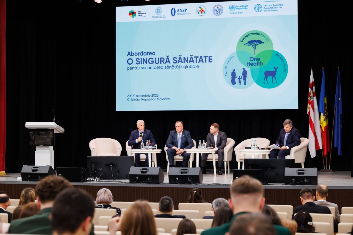Pentru a spori calitatea politicilor One Health, specialiștii din domeniu s-au reunit la Conferința națională cu participare internațională cu genericul „Abordarea o singură sănătate pentru securitatea sănătății globale”, ediția a III-a, ce s-a desfășurat în zilele de 20 și 21 noiembrie 2025 la Chișinău. Manifestarea a fost organizată de Asociația de Biosiguranță și Biosecuritate din Republica Moldova în colaborare cu Agenția Națională pentru Sănătate Publică (ANSP), Universitatea de Stat de Medicină și Farmacie „Nicolae Testemițanu”, Biroul OMS în Republica Moldova, cu sprijinul tehnic al Organizației pentru Alimentație și Agricultură și cel financiar al proiectului Fondului Pandemic.